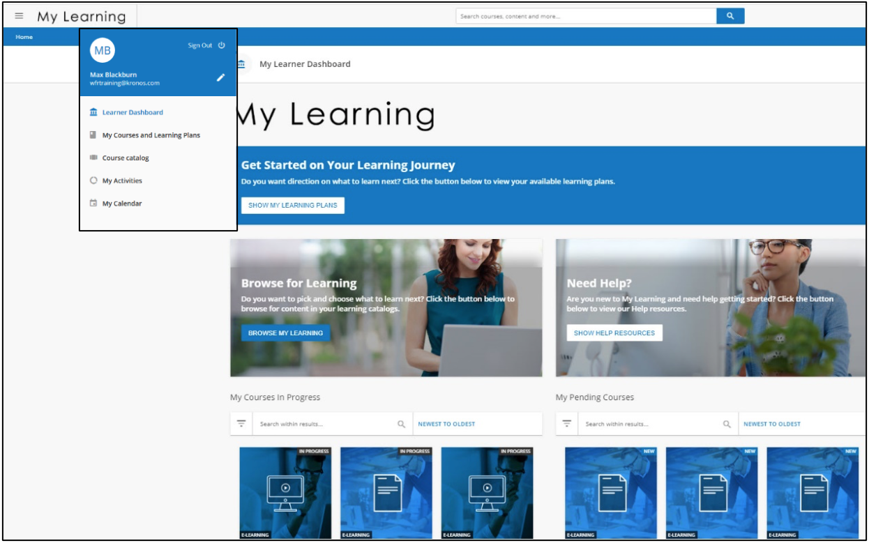 Below is a screenshot of the Learner Dashboard and Navigation menu.