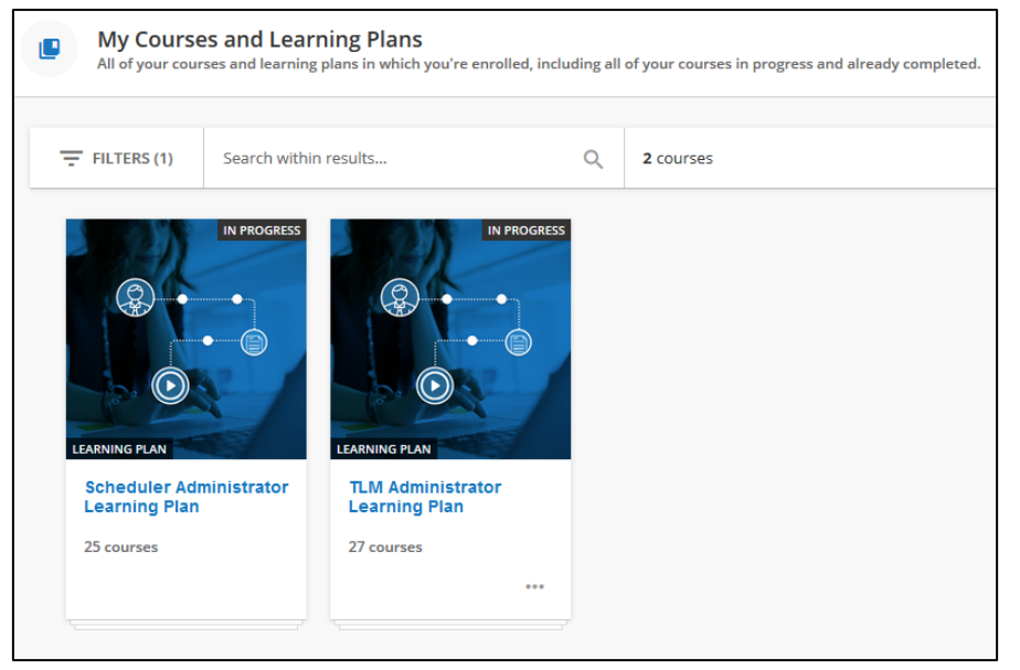 - Then, click the desired learning plan. Because these paths are personalized, each user will see different learning paths based on their application’s security profile persona(s).